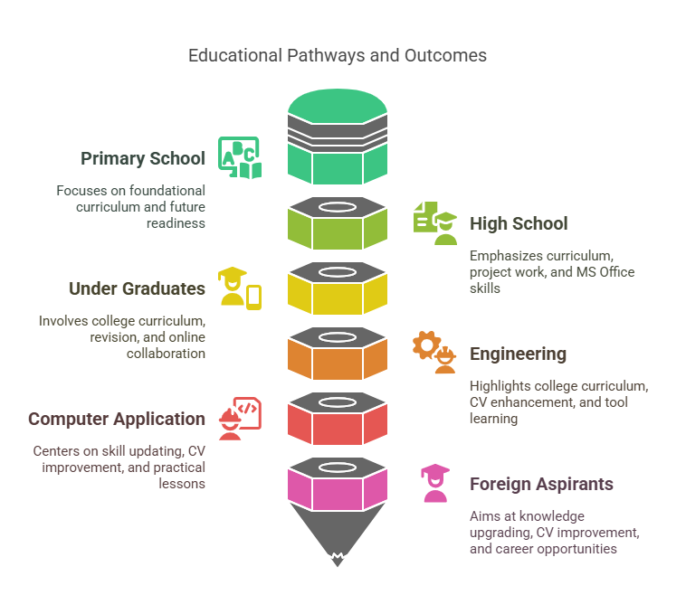 - Higher Education Seekers: Strengthen academic understanding through targeted revisions, collaborate effectively in online environments, and stay ahead in studies. Specialized Growth: Improve career prospects with industry-relevant tools, upgrade technical skills for practical application, and explore global opportunities for professional advancement.